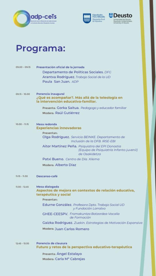 Así se titula la conferencia inaugural que voy a impartir en las II Jornadas ADP-CETS: Experiencias innovadoras de acompañamiento en contextos de relación educativa, terapéutica y social, el sábado 24 de octubre de 2020.